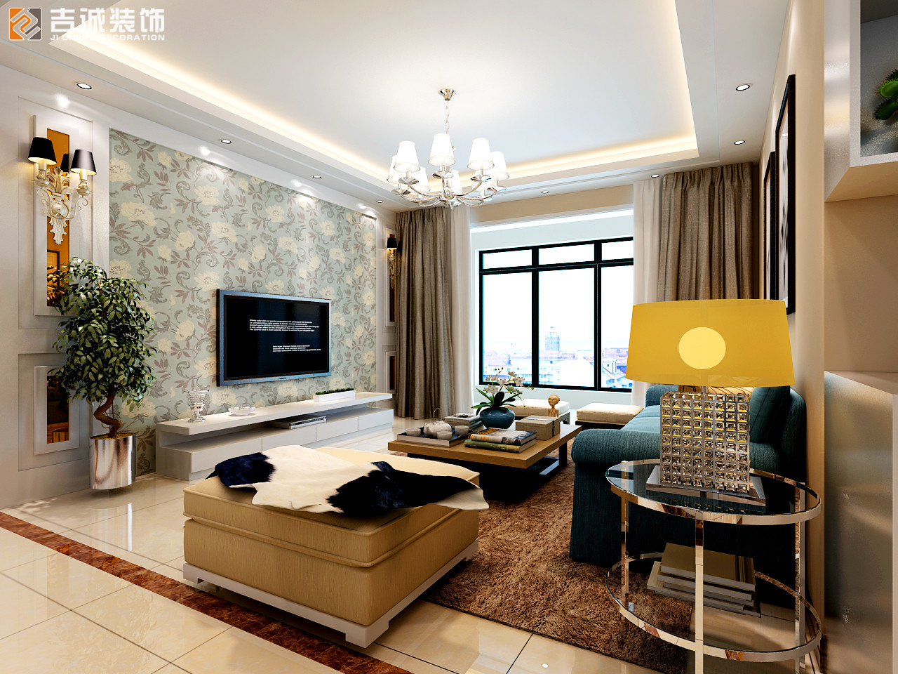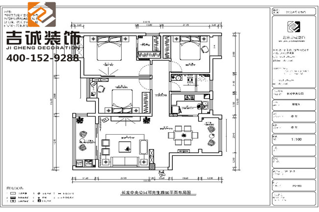 长龙中央公园125㎡三室两厅混搭风格